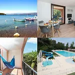 Apartmán Apartmán L'Ophelie, který se nachází 850 metrů od Parc de la Méditerranée, nabízí plážové ubytování s akvaparkem, tobogány a zahradou. Cesta z letiště Hyeres autem trvá přibližně 32 minut.